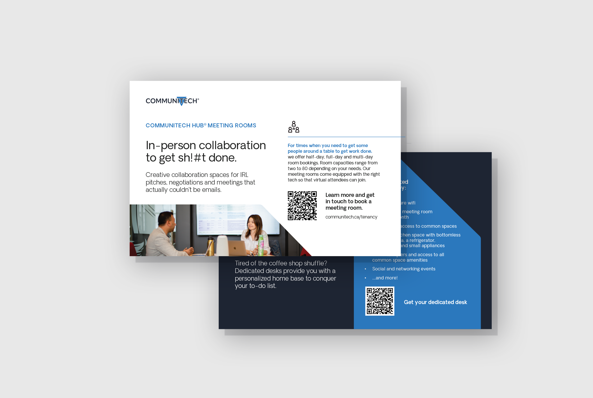 Communitech needed a refreshed visual identity that reinforced their commitment to supporting tech founders in Waterloo Region after taking a national focus for a period of time. In my role as an in-house designer I created a logo that draws on the legacy and equity of Communitech’s original logo with a modern refresh. The triangle representing the tri-city area of Kitchener, Waterloo and Cambridge, Ontario is the centrepiece of the Communitech brand. I delivered a full logo suite, a refreshed colour palette based around their iconic blue, comprehensive brand guidelines and extensive supporting assets.